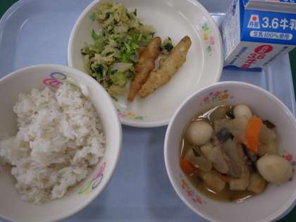 麦ご飯 牛乳 にこみおでん わかさぎフリッター ごまあえ