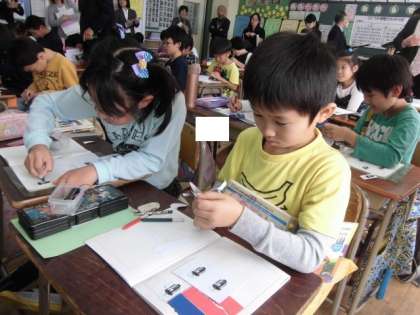 描かれている豆電球を切り、ノートに貼り、線を記入します♪