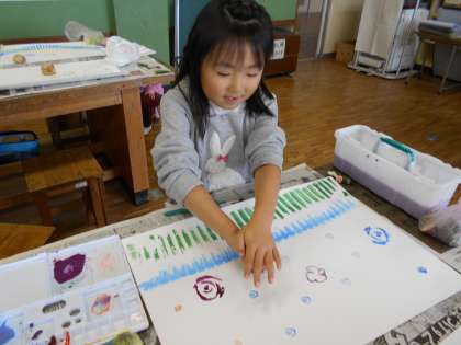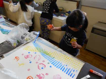 子どもたちは、いろいろな野菜を持ってきて、スタンプをして、とても楽しそうでした。