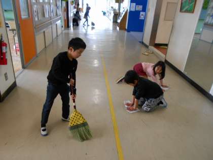 黙々と掃除に取り組んでいる1年生を見付けました。