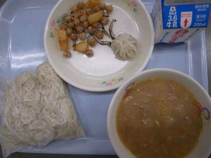 中華麺 牛乳 味噌ラーメン じゃが芋と豆のからあげ ポーク包子