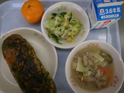 抹茶あげパン 牛乳 ポトフ ほうれんそうのサラダ 果物(みかん)