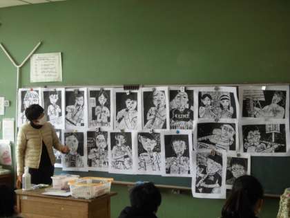 作成した版画を見合います。作者が工夫した点や頑張ったところなどを発表します。