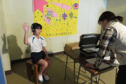 身長、体重、視力、聴力を測定しました。体格に合った机と椅子、視力や聴力に合った座席位置などを考えて、学習環境を整えていきます。