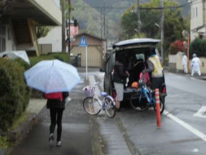 何台かの自転車を車に乗せて、運んでくれる保護者の方もいます。