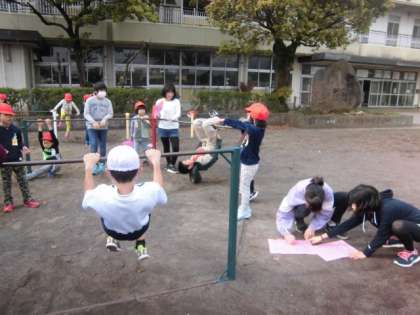 鉄棒運動にたくさんの子どもたちが頑張っています♫
