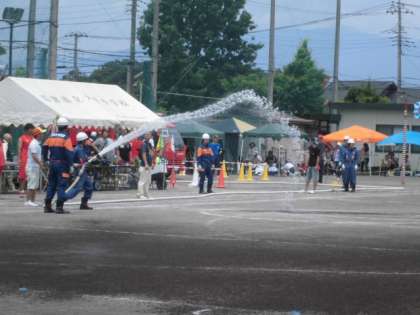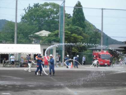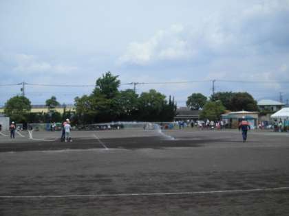 消防団の皆様が、グラウンドに水をまいてくださいます♪