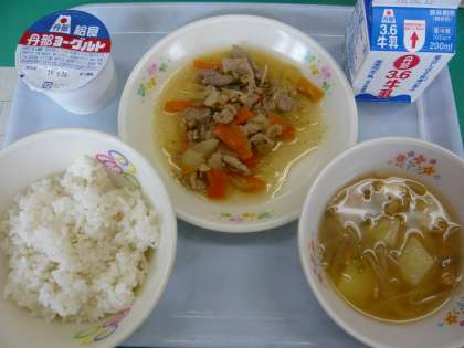 運動会の疲れが残っているかなと思い、疲労回復効果のあるビタミンB群が豊富な豚肉を使った献立にしました。とても食べやすかったようでヨーグルトまでペロリと食べ、昼休みが待ち遠しいようでした。子どもたちは大人と違い、疲れ知らずのようでした。。。
