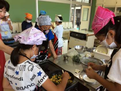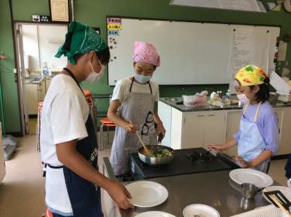 今日は6年1組の調理実習です。5年の時を思い出して,手つきも慣れています。
