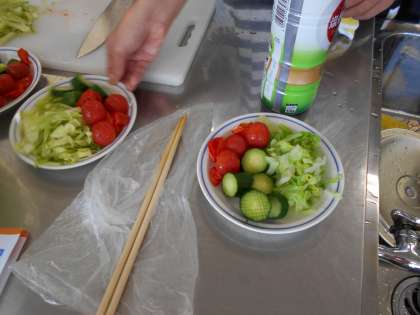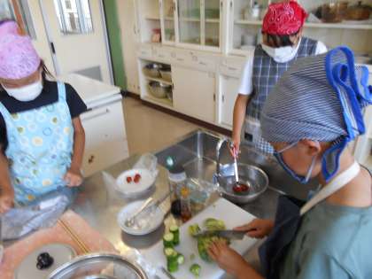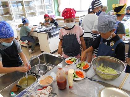 ゆで野菜サラダの調理実習 5年 2