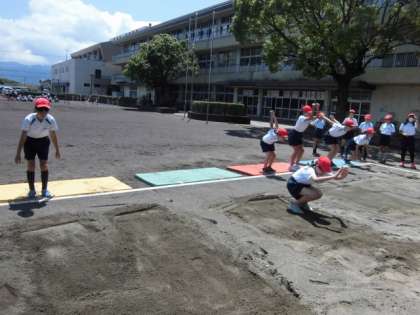 種目は、50m走、立ち幅とび、ソフトボール投げです!