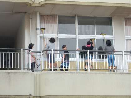 蒸し暑い中でしたが、みんなで働く力は、すごいです。学校の周りも、校舎の中もとてもきれいになりました。本当にありがとうございました。