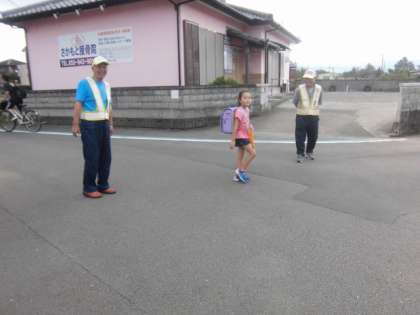 交通安全ボランティアの皆様は、子どもたちの名前やいつ頃ここを通るかを、把握してくださっています♬