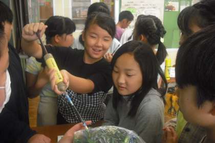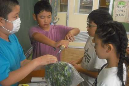6年生は理科で光合成の実験をしました。あいにく天候が合わず、よい結果が出ませんでしたが、植物と空気の関係をまとめられました。