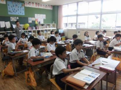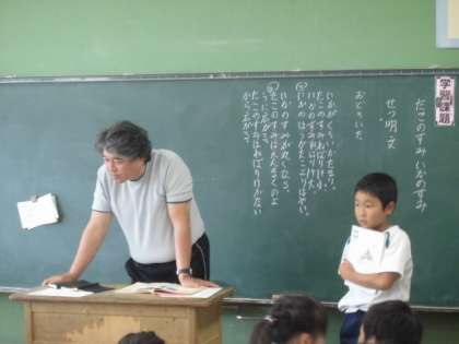 2年1組の国語は、「たこのすみ いかのすみ」です。