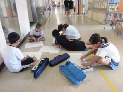 ☆学校訪問 5年1組 図工「楽器を吹く自分」  3☆
