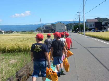 1年生が、生活科の勉強「あきとあそぼう」で、秋探しに鷲津神社に出かけました。黄金色の畑を横目に鷲頭神社を目指し、大平の秋をちょっぴり感じていました。みんなでお弁当をたべたあとは、どんぐり探しに夢中になりました。まだみどりいろのどんぐりやかわいい帽子をかぶったどんぐりなど子どもたちは、たくさんのどんぐりをひろいました。