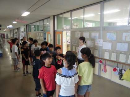 昨日、10月7日に行われた就学時建康診断で、園児たちの誘導を来年度ペアを組む5年生が担当しました。