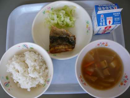 今日の給食 10月9日 公開日 2019/10/09 更新日 2019/10/09 給食 ・牛乳 ・麦ごはん ・さんまの蒲焼き ・塩キャベツ ・五目汁 今日は季節のサンマの蒲焼きでした。サクッと揚がっていておいしいと好評でした。 いいね(0)