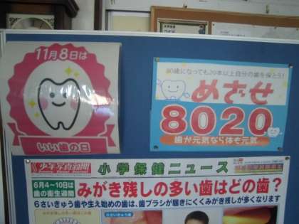 職員室前に、「11月8日はいい歯の日」の展示です!