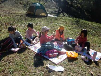 おいしいお弁当を食べた後は、思いっきりしばふをすべっては登り、すべっては登り、みんなとても楽しそうでした。だれかが空にむかって「楽しい!」と叫んでいました。