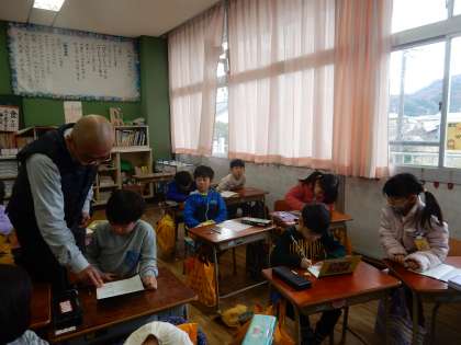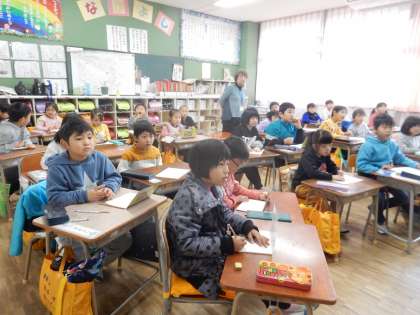 1年生が、自分で予定帳に予定を書くことに挑戦しました。みんな新しい自分の予定帳に、予定黒板を見ながら、丁寧に明日の予定や宿題を書いていました。書き終わった予定は、先生にチェックしてもらいました。これから毎日自分で予定を書きます。
