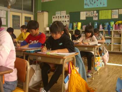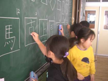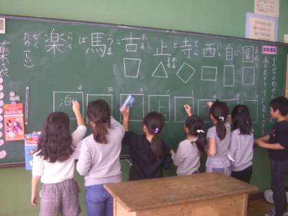 4時間目の書写の時間に、まとめとして漢字を形よく書く練習をしました。全体の形と筆順、画と画の交わり方に気をつけて真剣に書きました。