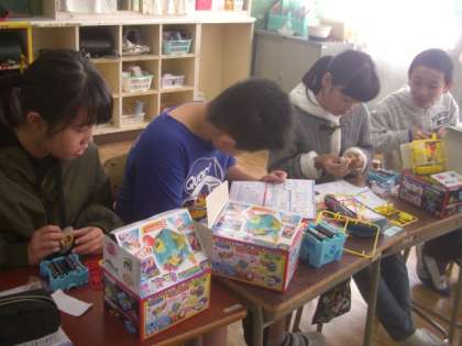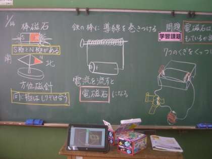 4時間目の理科では電磁石の働きについて学習しました。専用キットを組み立てて乾電池と導線でつなぎスイッチオン!「わあー釘が8個もくっついたー!」とびっくりの実験でした。