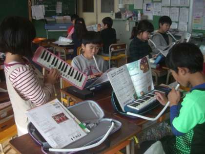2時間目の音楽では、「こぐまの2月」を3つのパートに分かれて合奏しました。誰がどこのパートを担当するかを決めて、さあ練習!「いっせーのでっ」とかけ声をかけてグループで演奏します。テンポを合わせて、友達の鍵盤ハーモニカの音を聞いて、息の強さを加減してと考えながら演奏します。気持ちを合わせていい演奏を作っていくのって楽しいなと感じられるとうれしいです。