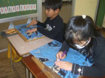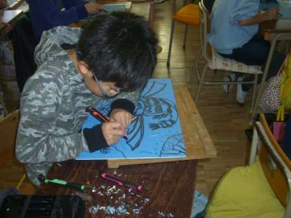 4年 彫刻刀を使って彫ったよ!