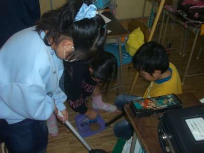 三角刀、丸刀、平刀など刃先の違いを考えながら彫り進めます。最後の片付けも協力して進められて立派です。