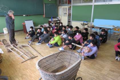 ゲストティーチャーに来ていただいて、昔の道具や生活の様子を学習しました。