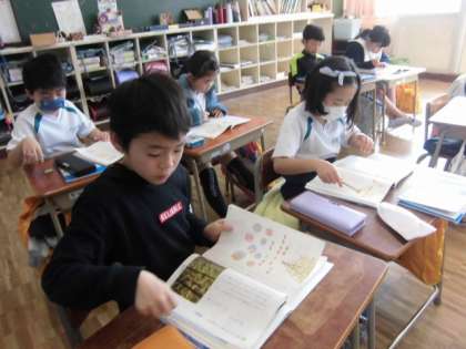 2年1組の国語は、「どんぐり」です。