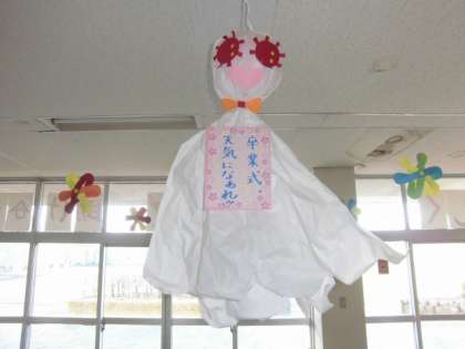 威力抜群の「てるてる坊主」が生徒玄関に! 「卒業式 天気になあれ」
