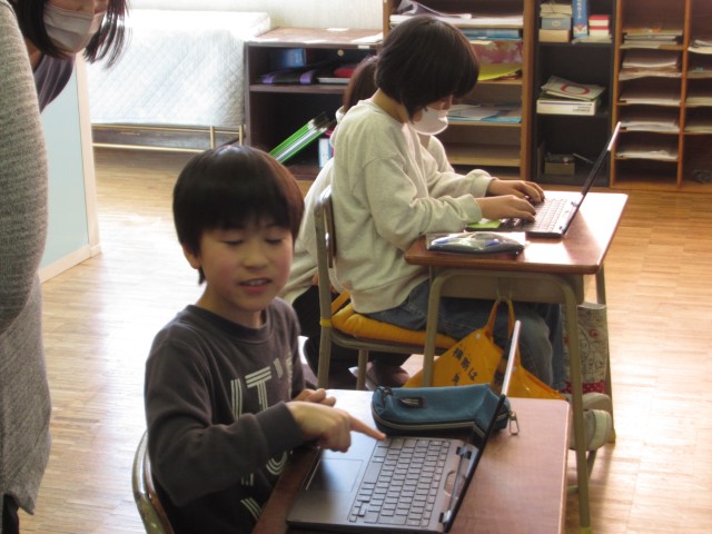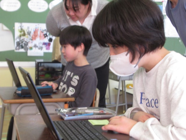 クロームブックを使ってまとめを行っています。