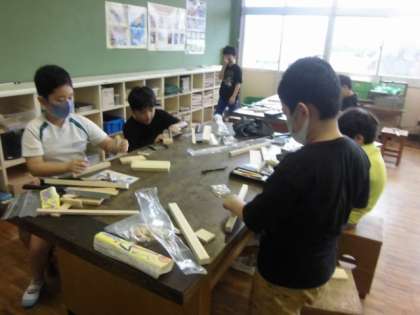 切った木から作りたい形を見つけ、組み合わせたり、くぎでつないだりして、楽しい物を作ろう!