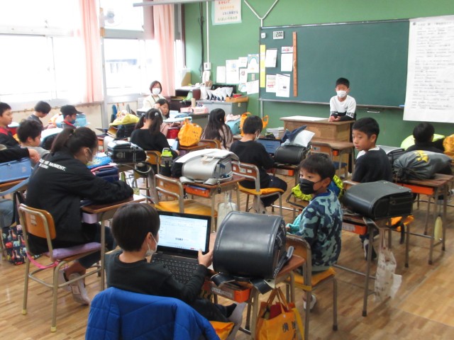 帰りの会の中でクイズを出し合っています。
