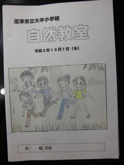 自然教室のしおりです。 スローガンは「自然の中で 一致団結」 楽しみが膨らみます♪