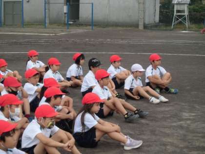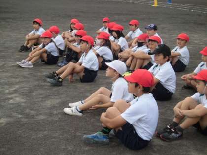先生から、バトンの渡し方。もらい方の説明の話を落ち着いて聞いています♬