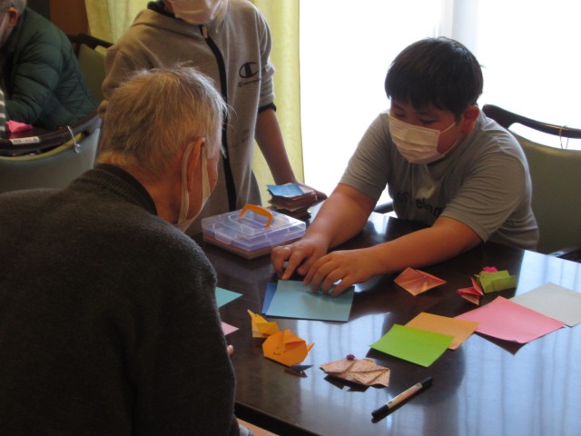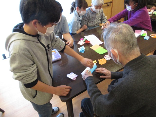 5年生は和みの里で福祉体験を行いました。4つのグループに分かれ、それぞれが計画したゲームや遊びを紹介し、おじいさん、おばあさんと交流をしました。
