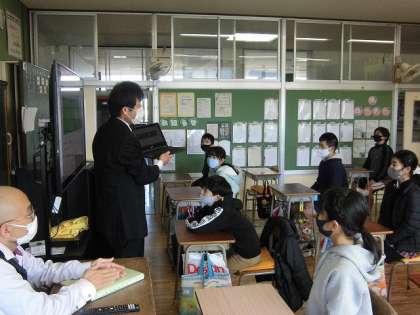 6年1組で、一人一台端末、Chomebookの貸与式、初回の授業が行われました。