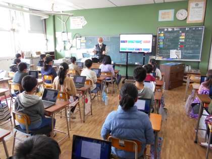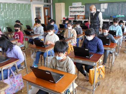 4年1組で、一人一台端末、Chomebookの貸与式、初回の授業が行われました。子供たちは大事そうに自分のクロームブックを取り出しって、先生の説明をしっかり聞きながら操作をしました。