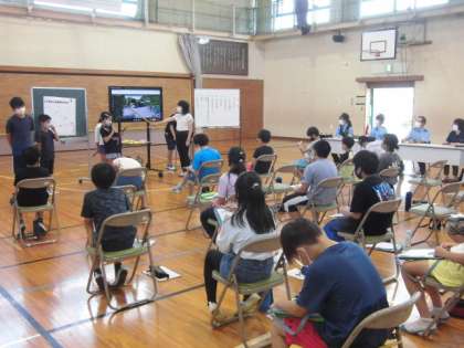 発表では1人1台端末のプレゼンテーションソフトを使って、絵や写真、グラフで示し、聞き手に分かりやすいように工夫をして発表をしていました。