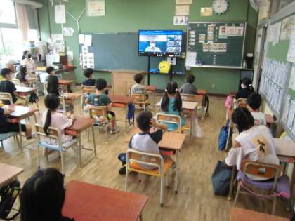 今日の朝会はリモートで行いました。後期学級委員や委員長の任命、表彰を受ける子供たちは、教室でその場に立ち、代表の子と一緒に任命や賞賛の拍手を受けていました。
