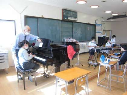 2年生が音楽の時間に合奏の発表会をしました。どの子も真剣に演奏しています。今までできなかったことができるようになった子、「ピアノを習ってないけど挑戦した」と、ピアノ伴奏に挑んだ子。苦手な友達に寄り添い楽器演奏を教えた子…。それぞれに頑張って満足げでした。できないことを友達の励ましや自分の努力によって克服し、また一歩3年生に近づいています。