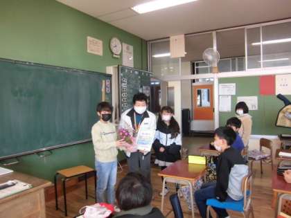 今年度の読み聞かせは最後です。3月担当の学級で、お礼の言葉とともにお花のプレゼントをさせていただきました。いつも楽しい読み聞かせをありがとうございました。