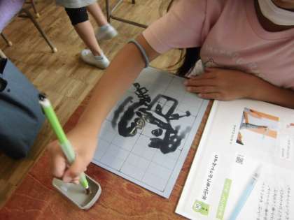 水ふでをつかって、2年生が思い思いの文字を書きました。