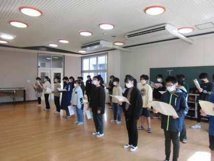 6年生の音楽では、いよいよ卒業式の歌の練習をしています。