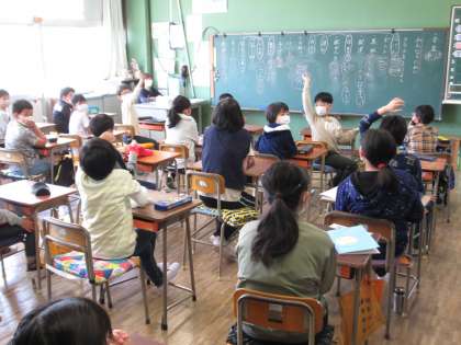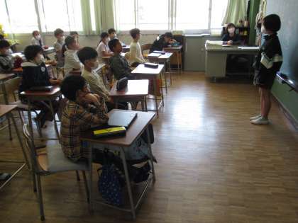 それぞれの学級で、学校生活の説明や自己紹介、レク、作業等行っています。