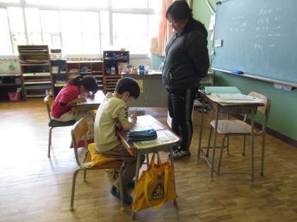 それぞれの学級で、学校生活の説明や自己紹介、レク、作業等行っています。